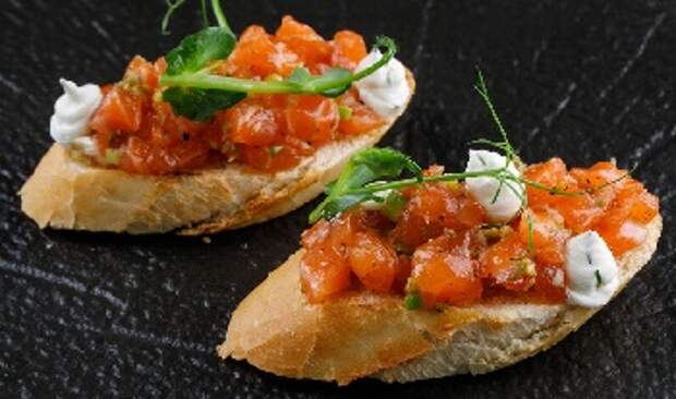 Так и с брускеттой — толстым куском хлеба, обжаренным на гриле до хрустящей корочки. Этот кусок сбрызгивают оливковым маслом холодного отжима и натирают зубчиком чеснока. Закусочный вариант брускетты содержит сыр, мясо, морепродукты и многое другое, что можно положить на хлеб.