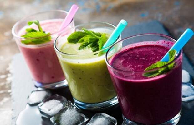 Чтобы приготовить смузи, смешайте в блендере или миксеры ягоды, фрукты или овощи одного вида и, по желанию, добавьте в густую смесь воду, сок или молоко. Получится полезный и питательный напиток.
