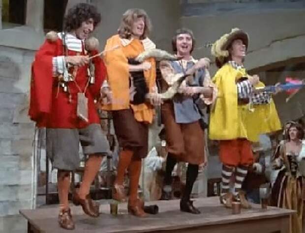 Настоятельно рекомендую вам посмотреть эти комедии - получите заряд прекрасного настроения! На Кинопоиске они размещены под названиями "4 мушкетера Шарло" и "Четверо против кардинала".