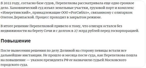 Я вижу эти комментарии: «Лишила Дерипаску миллионов, пошла на повышение после дела Долиной». Люди складывают два и два. И получается нехорошая арифметика.