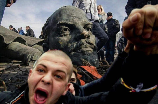 А начиналось там точно так же, со сноса памятников советского времени, сноса памятников Ленина, и других политических деятелей Советского Союза, потом добрались и до братских могил советских солдат погибших при освобождении Украины от фашистских захватчиков, и так далее.